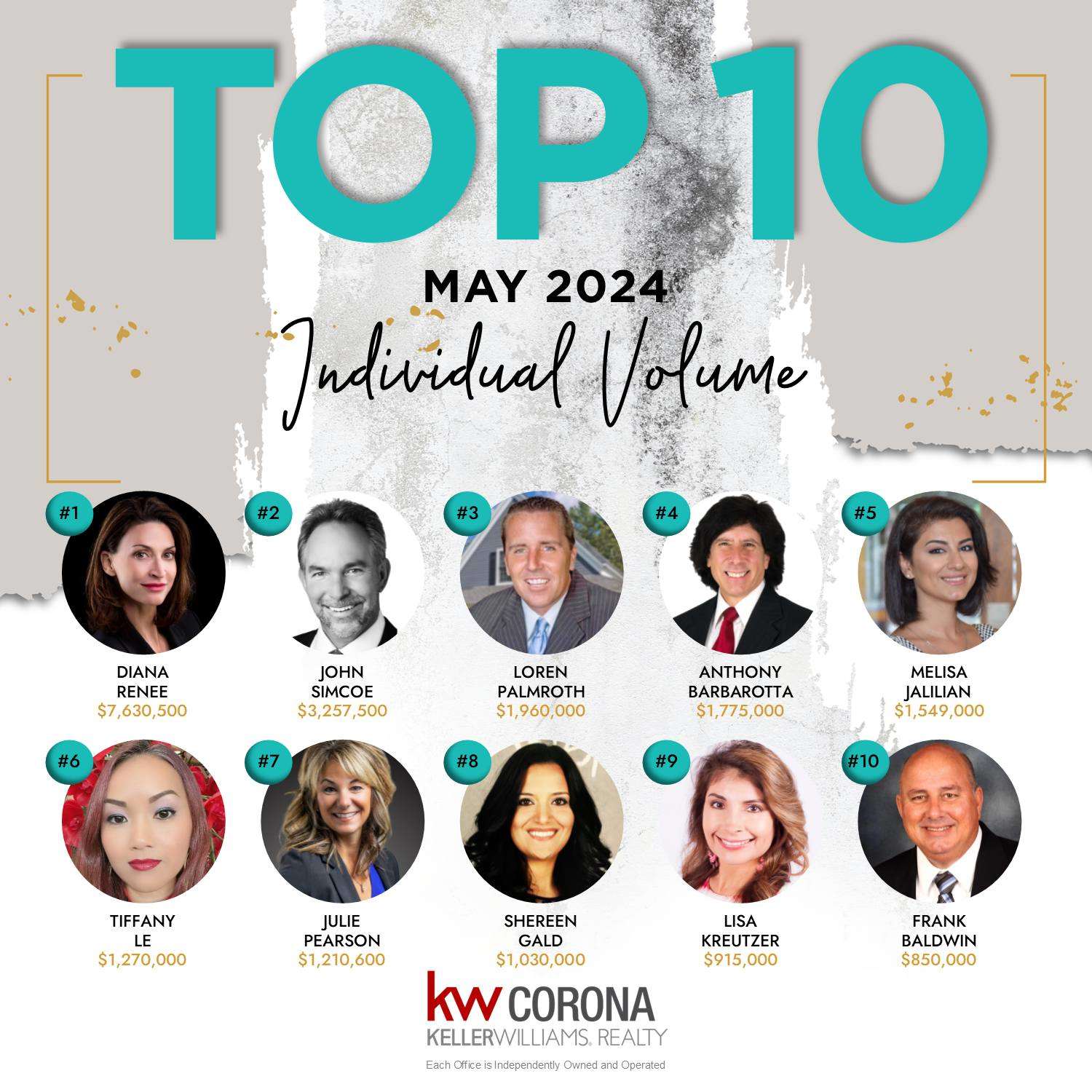 May 2022 KW Corona #1 in Closed Volume Teams